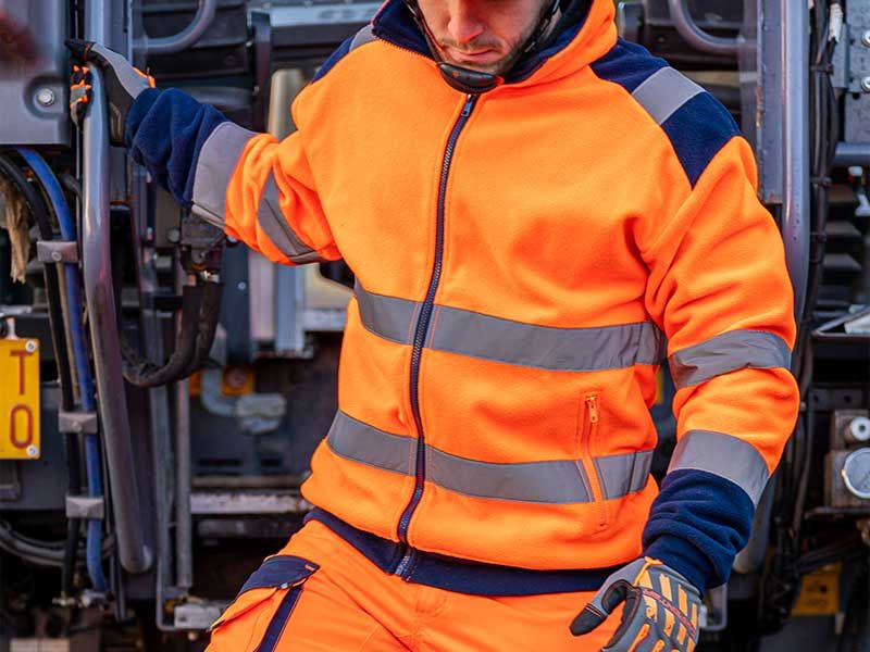 EN ISO 20471:2013 + A1:2016 visoka vidljivost glavna tkanina:100 % poliester fleece 300 g/m2 regular fit COLD PROOF - zaštita od hladnoće i vjetra udobna i izdržljiva, reflektirajuća radna fleece jakna tkanina otporna na kidanje i trošenje (wearproof) džepovi sa patentom elastični dio u struku i na dnu rukava HV trake 5 cm