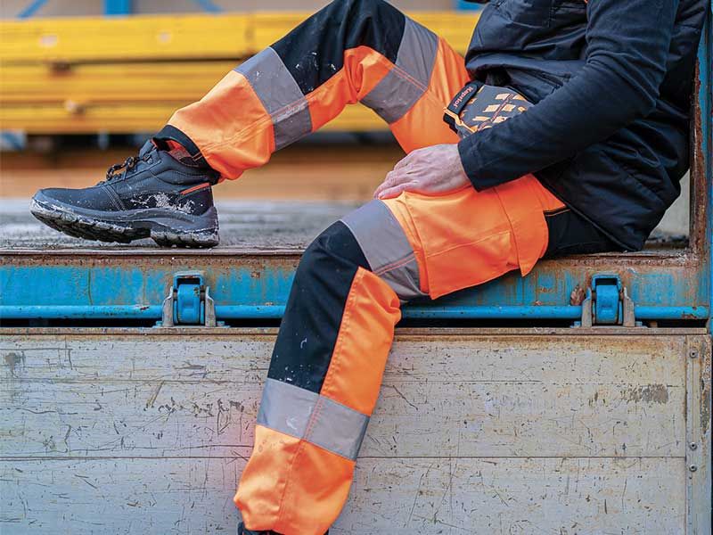 EN ISO 20471:2013 + A1:2016 visoka vidljivost glavna tkanina:60 % pamuk,40% poliester 240 g/m2 umetci / ojačanja: 65% poliester , 35 % pamuk 245 g/m2 regular fit tkanina otporna na kidanje i trošenje (wearproof) elastične u struku cargo džepovi iznad koljena dva zadnja džepa na preklop džepovi kosi standard HV trake 7 cm
