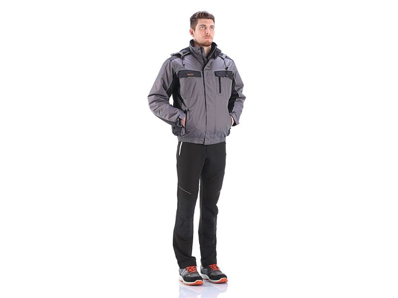 zimska jakna SMART , EN 14058zaštita od hladnoce , vjetra i kišeglavna tkanina 100 % poliester Ponge Ripstop PVC sloj 250-260 WP 3000 mmzavršna obrada : Hard Feeling Water repellentispuna : mekano punjenje 100 % poliesterpodstava : 100 % poliester Taffeta 60 g/m2kapuljaca sa prednjom elasticnom trakom za podešavanje širinepodstava ovratnika micro fleecena svim patentima dodatak za lakše zatvaranje u slucaju korištenja rukavicareflektirajuce crteveliki broj komfornih džepovavelicine od M do XXXL
