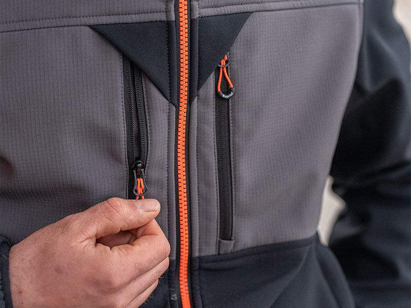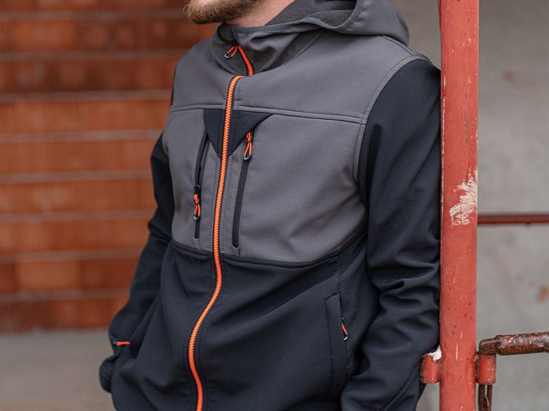 96 % poliester softshell, 4 % elastan 320 g/m2 zaštita od vjetra (WIND PROOF), zaštita od hladnoće (COLD PRROF) water repellent završna obrada tkanine ušivena kapuljača , unutrašnjost obložena fleece materijalom dva okomita džep na patent u visini grudi veliki cargo džepovi na patent u području zgloba sužena elastična manžeta koja sprječava ulaz hladnog zraka dodatna zaštita ispod patentna za smanjeni ulazak hladnog zraka