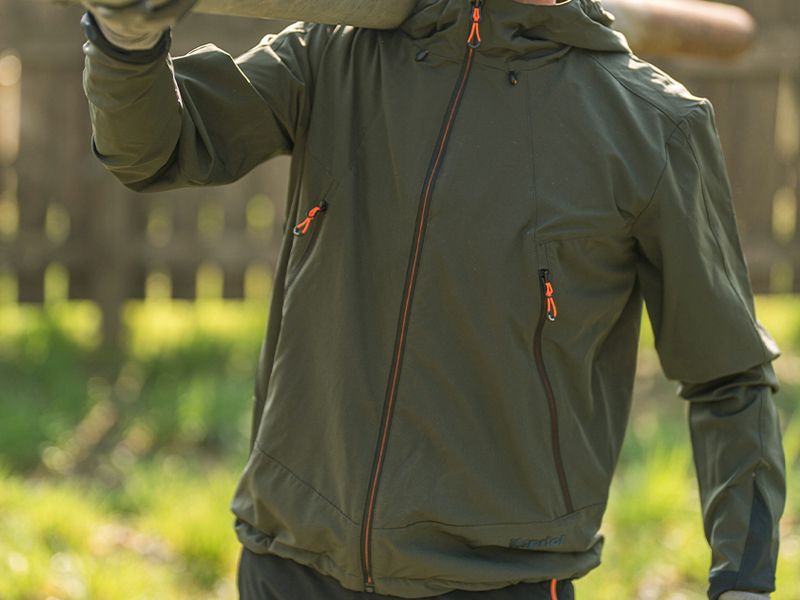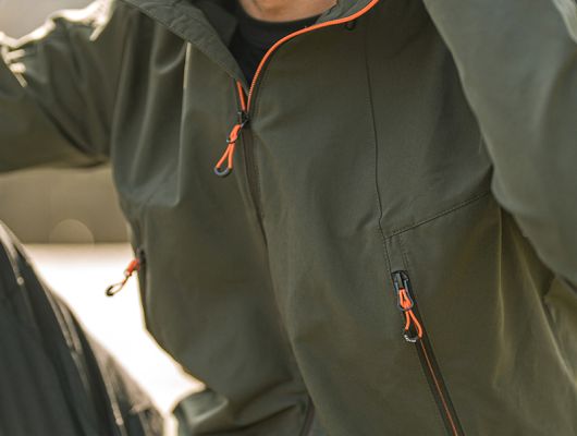 lagana jakna softshell 95% polyester 5% elastan 180 g/m2 kapuljača sa elastičnim vezicama zaštita od vjetra i kiše tkanina otporna na habanje funkcionalni cargo džepovi sa kontrastnim patentom glavni kontrastni patent