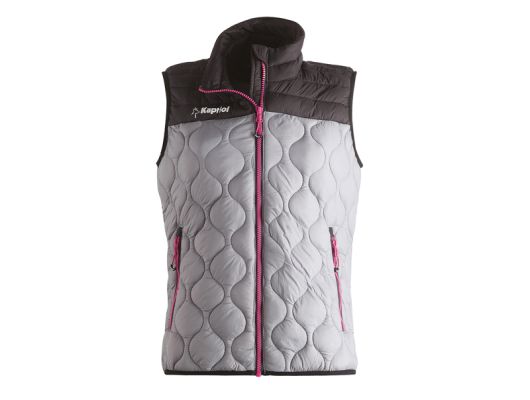 urbani prsluk THERMIC - woman line zaštita od vjetra i hladnoće lagana i mekana ispuna 100 % Nylon Taffeta ispuna 100 % Poliester Thermore 100 g/m2 podstava 100 % nylon Taffeta dno prsluka i rukavi imaju zaštitnu elastičnu traku smanjeni prodor hladnog zraka zaštita ispod glavnog patenta veliki džepovi sa patetnom veličine od XS do L