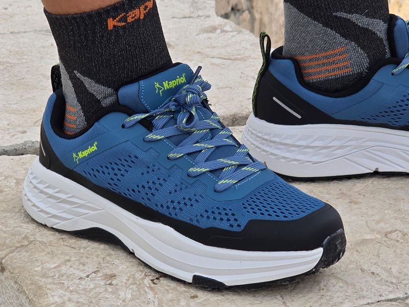 moderni sportski izgled za slobodno vrijeme ili lagane vrste radove gdje nema opasnosti od ozljeda gornjište : kombinacija prozračna tkanina + TPU srednji dio izrađen od EVA materijala kako bi se osigurala mala težina i fleksibilnost donji dio đona čini gumeni sloj kako bi se osigurala stabilnost i protuklizna svojstva visoki đon za komfor i stabilnost stopala REGULAR FIT mekani obloženi spužvasti dio u području zgloba i jezika plavo žute vezice crna podstava unutrašnjosti cipele ventilirajuće rupice za prozračnost